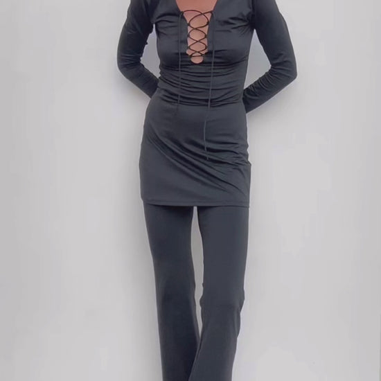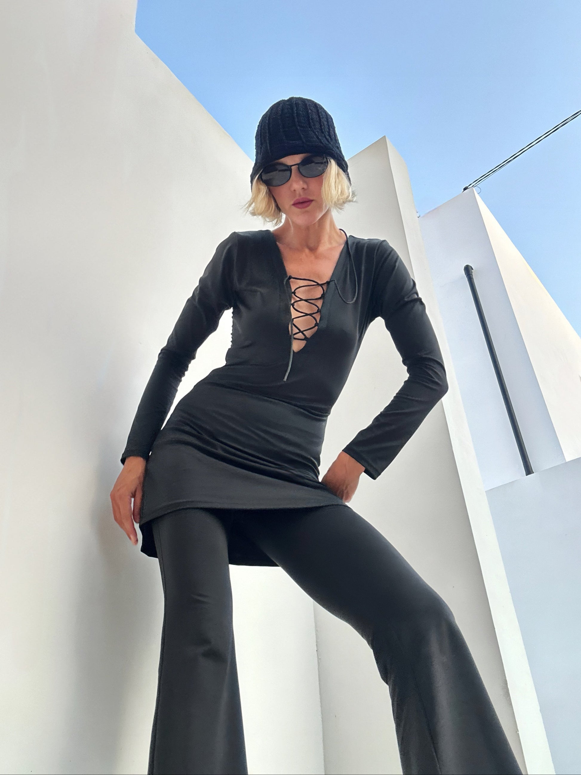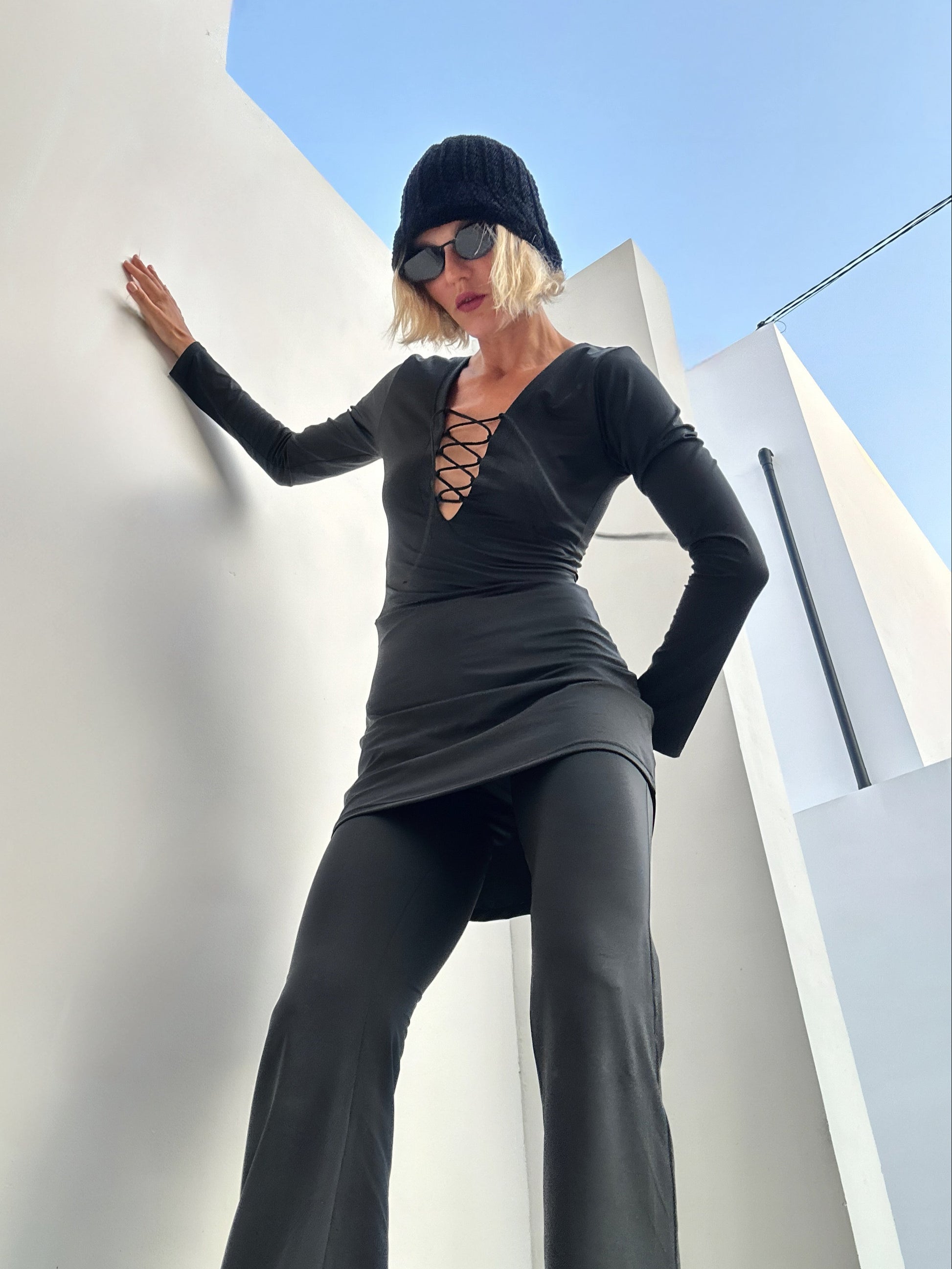 This set looks like it came straight from the streets of the fashion capitals of the 80s — a dress layered over cropped trousers creates a bold yet elegant look. Perfect for those who love to stand out while staying in the rhythm of the city.